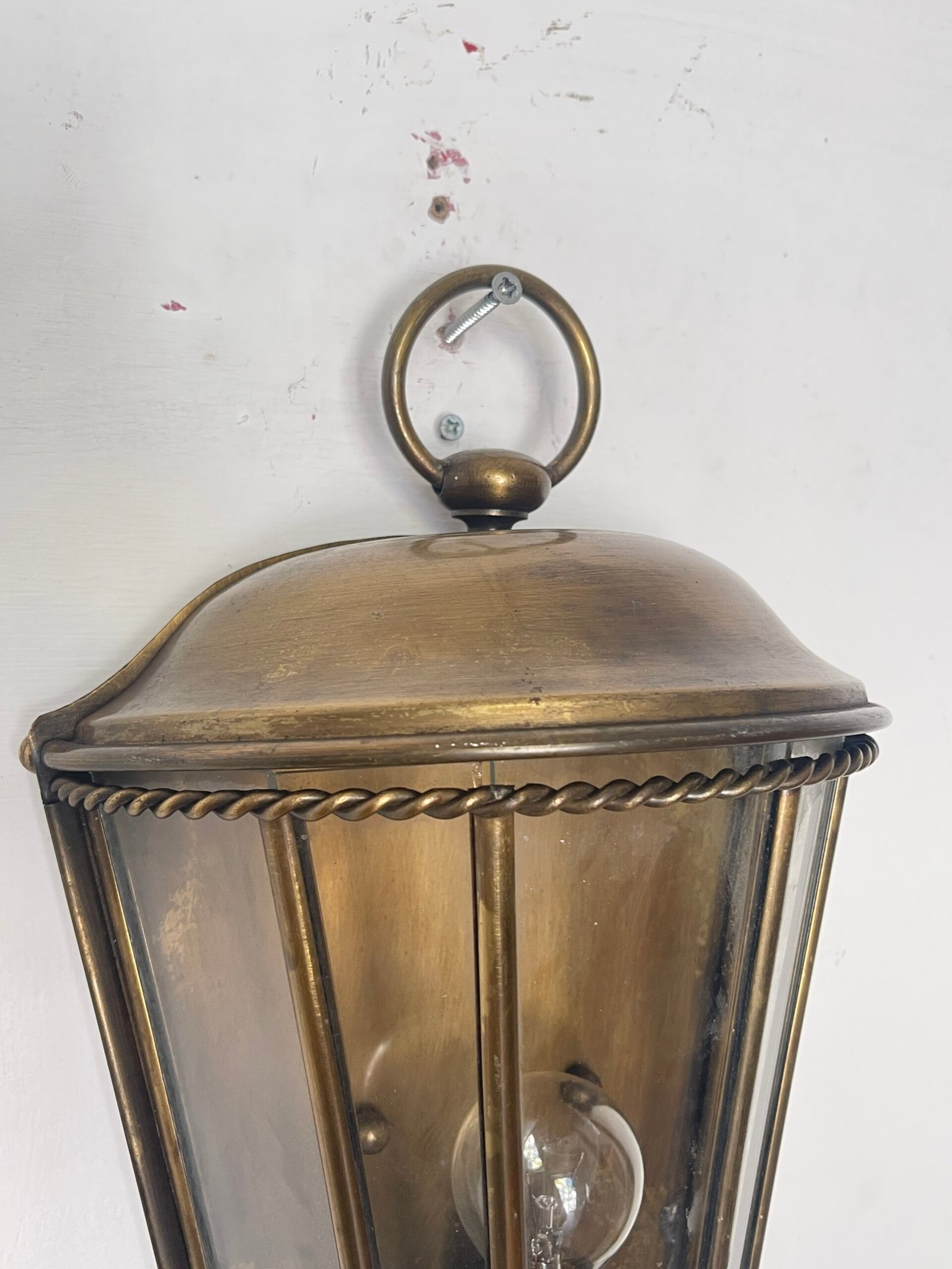 Applique da Parete Vintage in Ottone Anticato con Vetro Trasparente