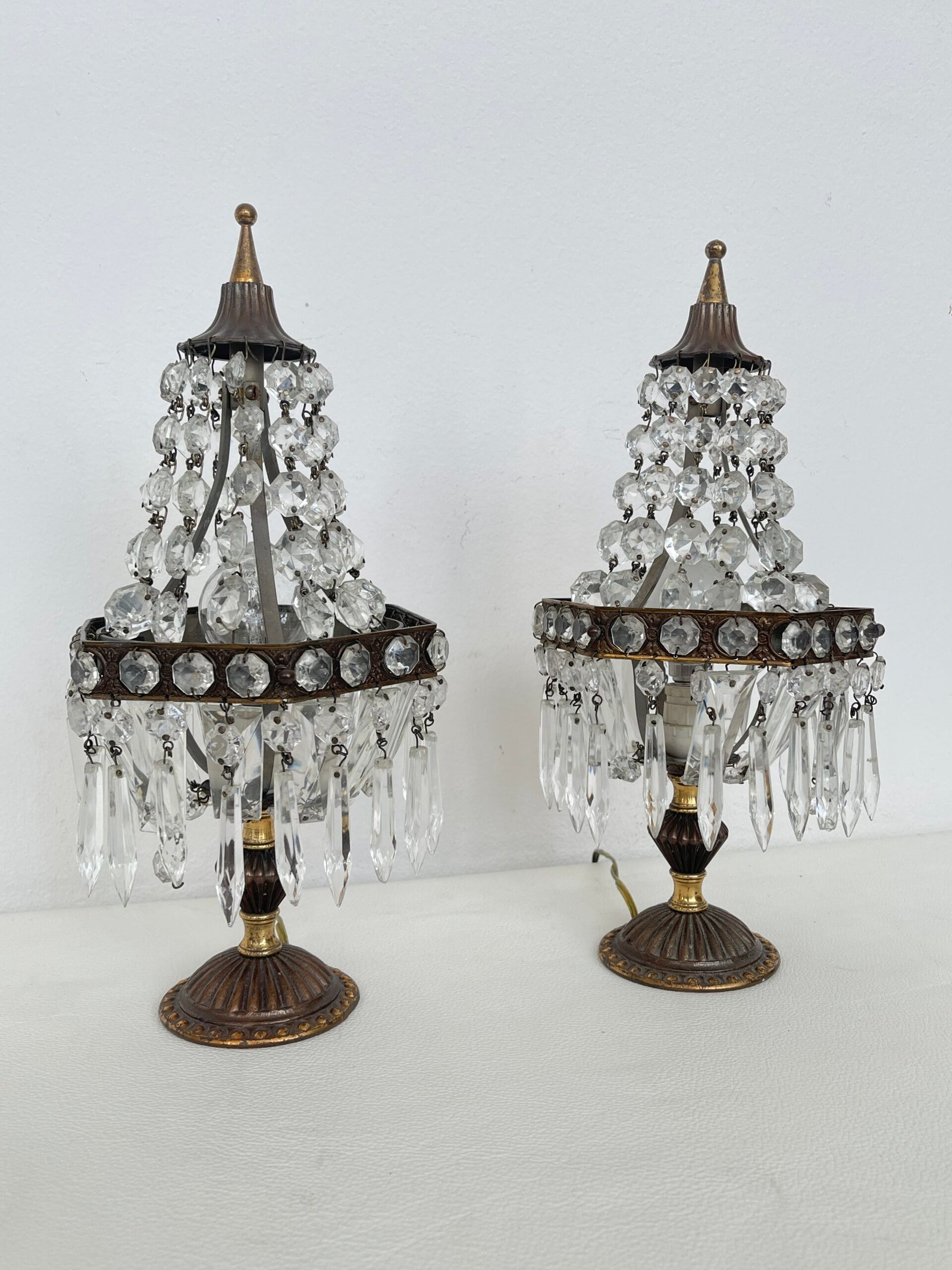 Coppia di lampade in stile classico è perfetta per chi cerca un tocco di lusso e raffinatezza nella propria casa. Ogni lampadario è adornato con cristalli trasparenti che riflettono la luce in modo splendido, creando giochi di luce suggestivi e affascinanti. Il design vintage, arricchito da dettagli dorati sul supporto, aggiunge un fascino senza tempo a qualsiasi stanza. Ideali per soggiorni, ingressi o camere da letto, questi lampadari sono perfetti anche per chi cerca un elemento decorativo unico, capace di trasformare ogni ambiente con un tocco di classe.