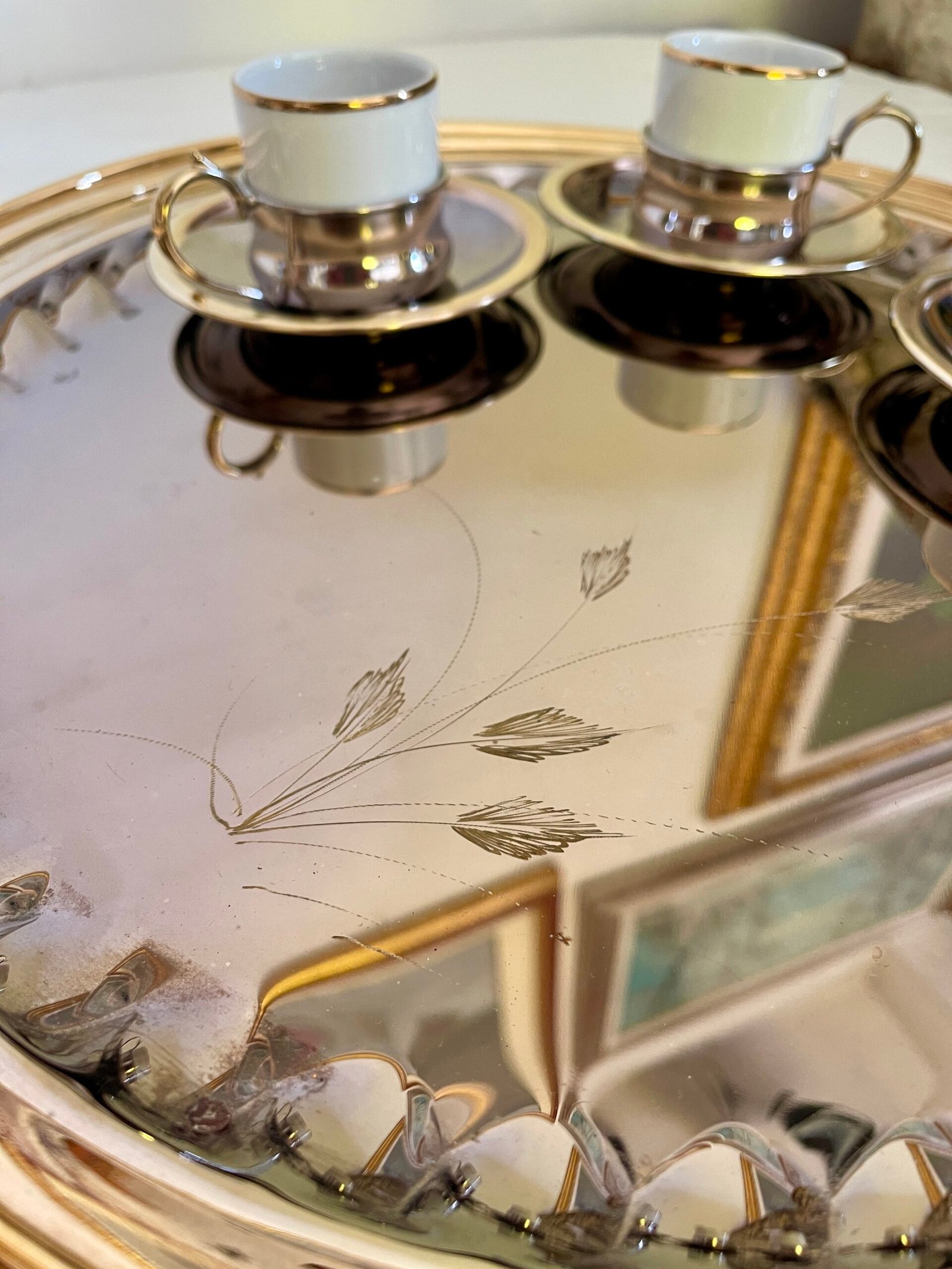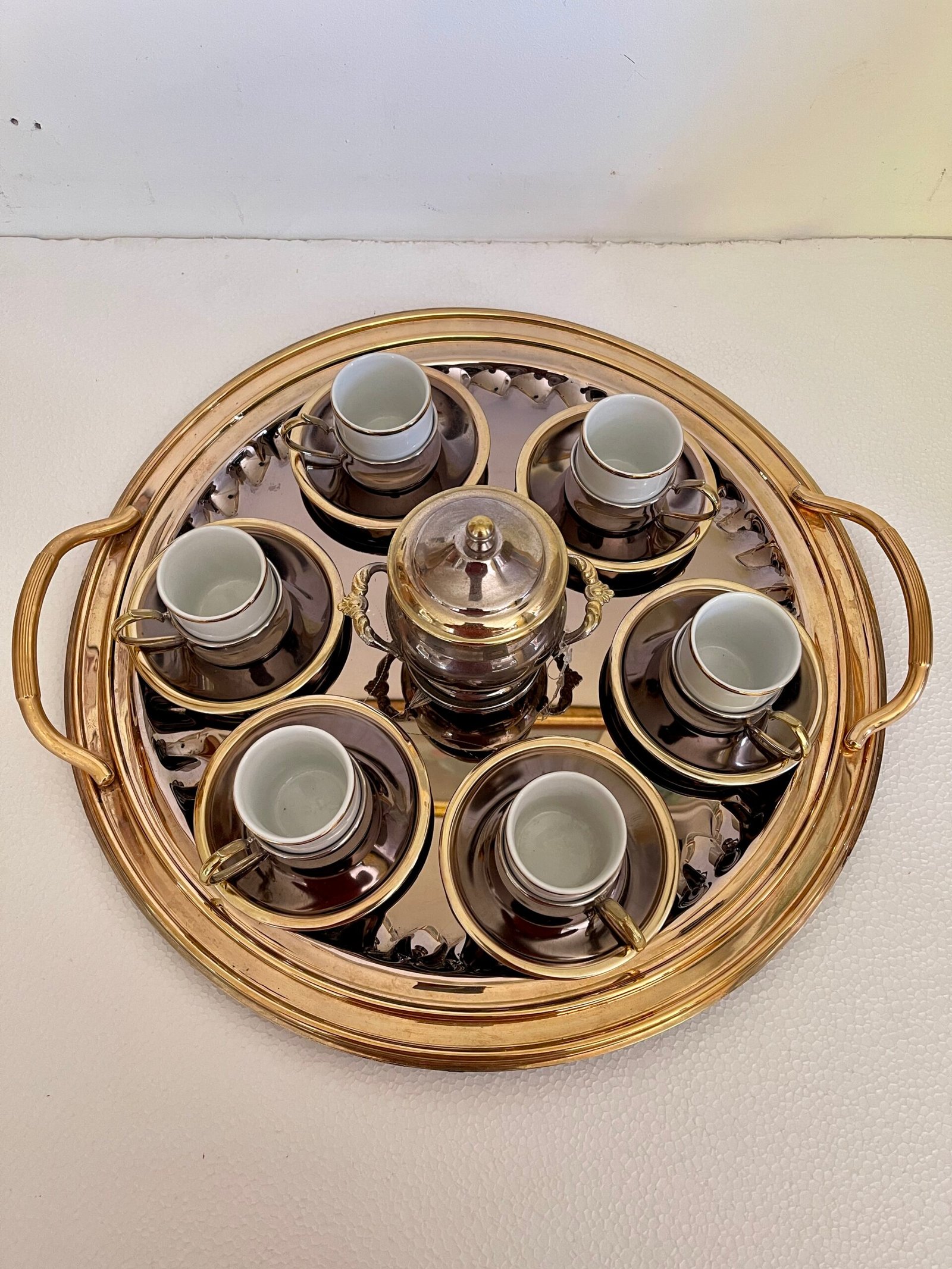 Be the first to review “Elegante servizio da caffè in porcellana e metallo argentato – completo di vassoio”