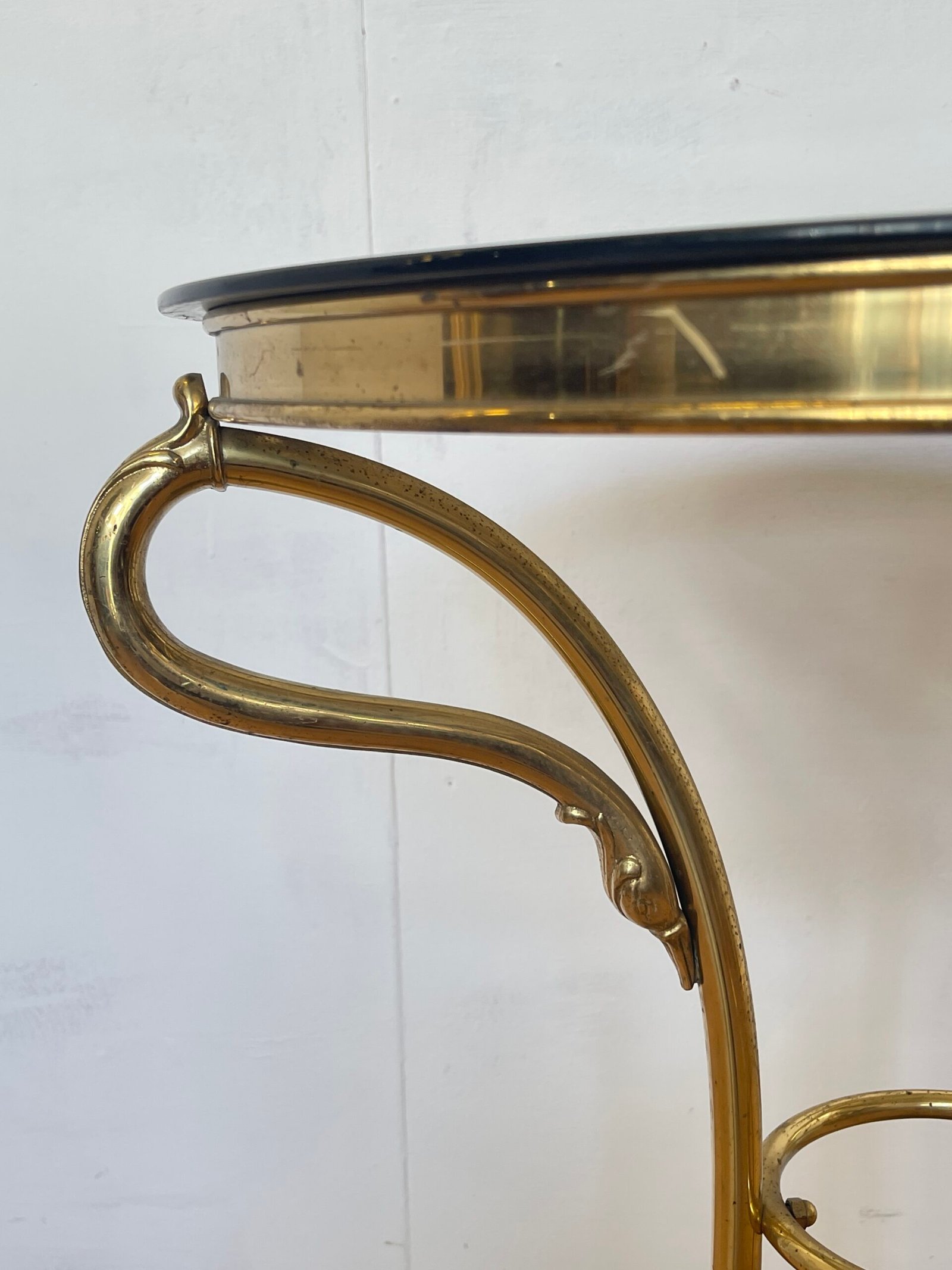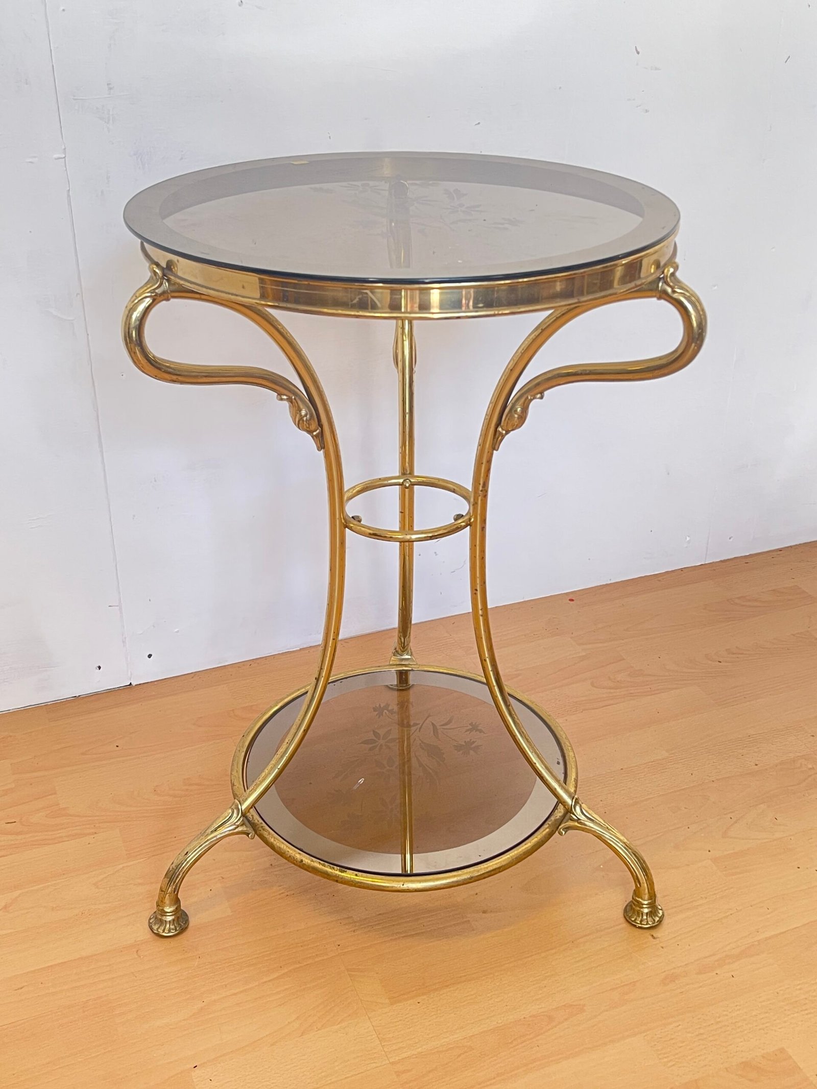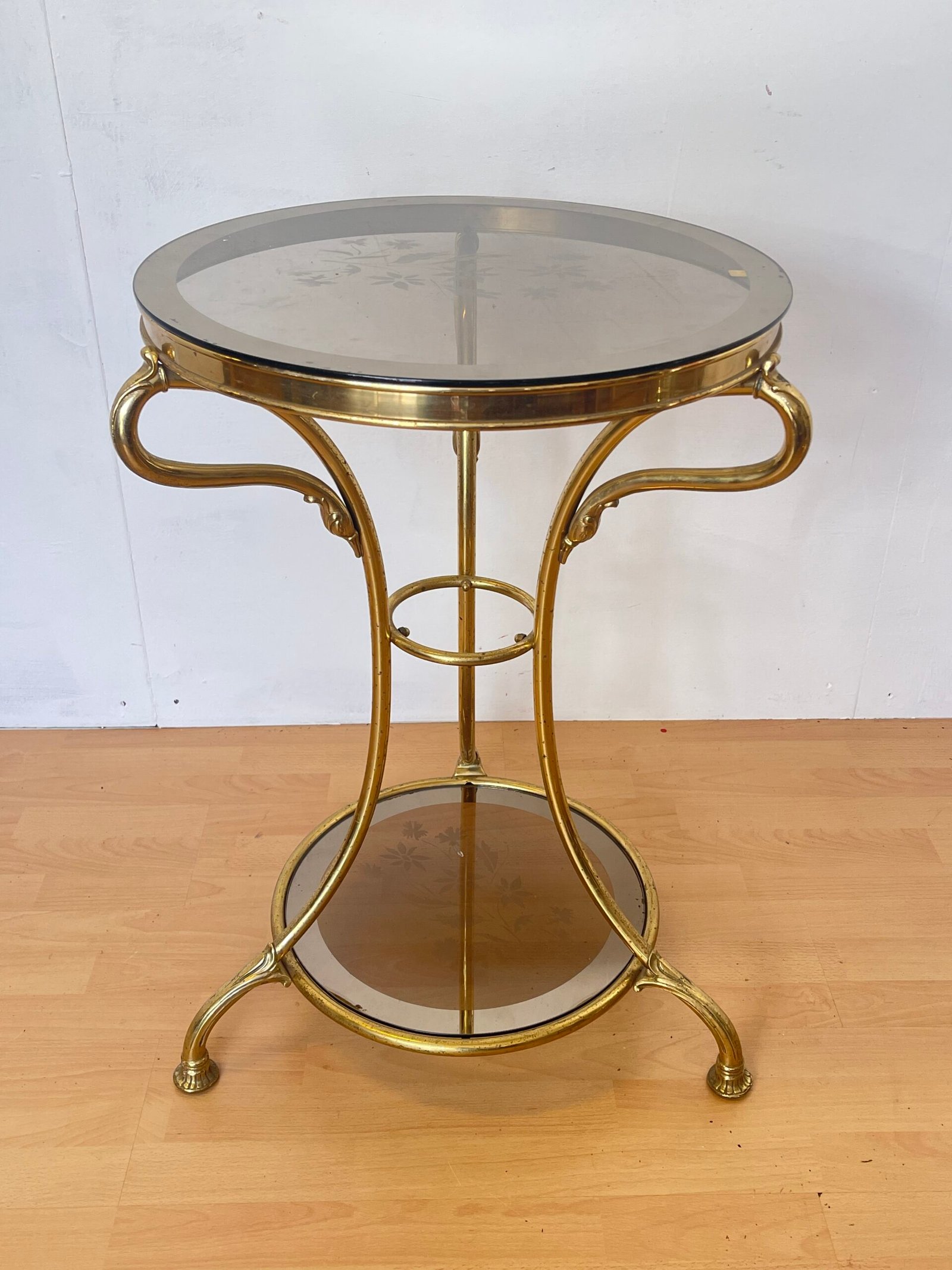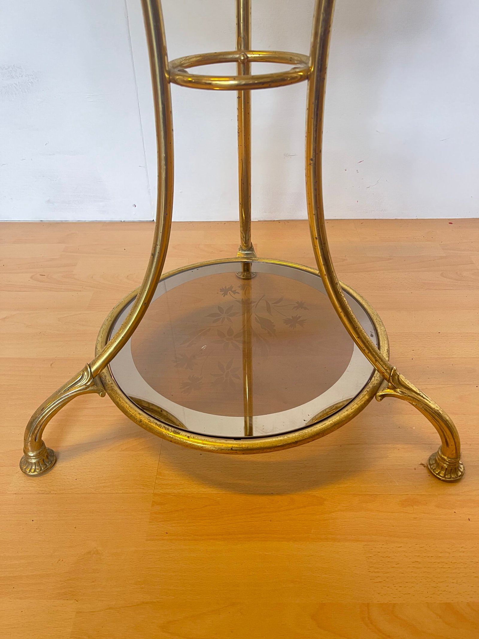 Tavolino con Base in ottone Dorato e Piano in Vetro Decorato, anni ’90