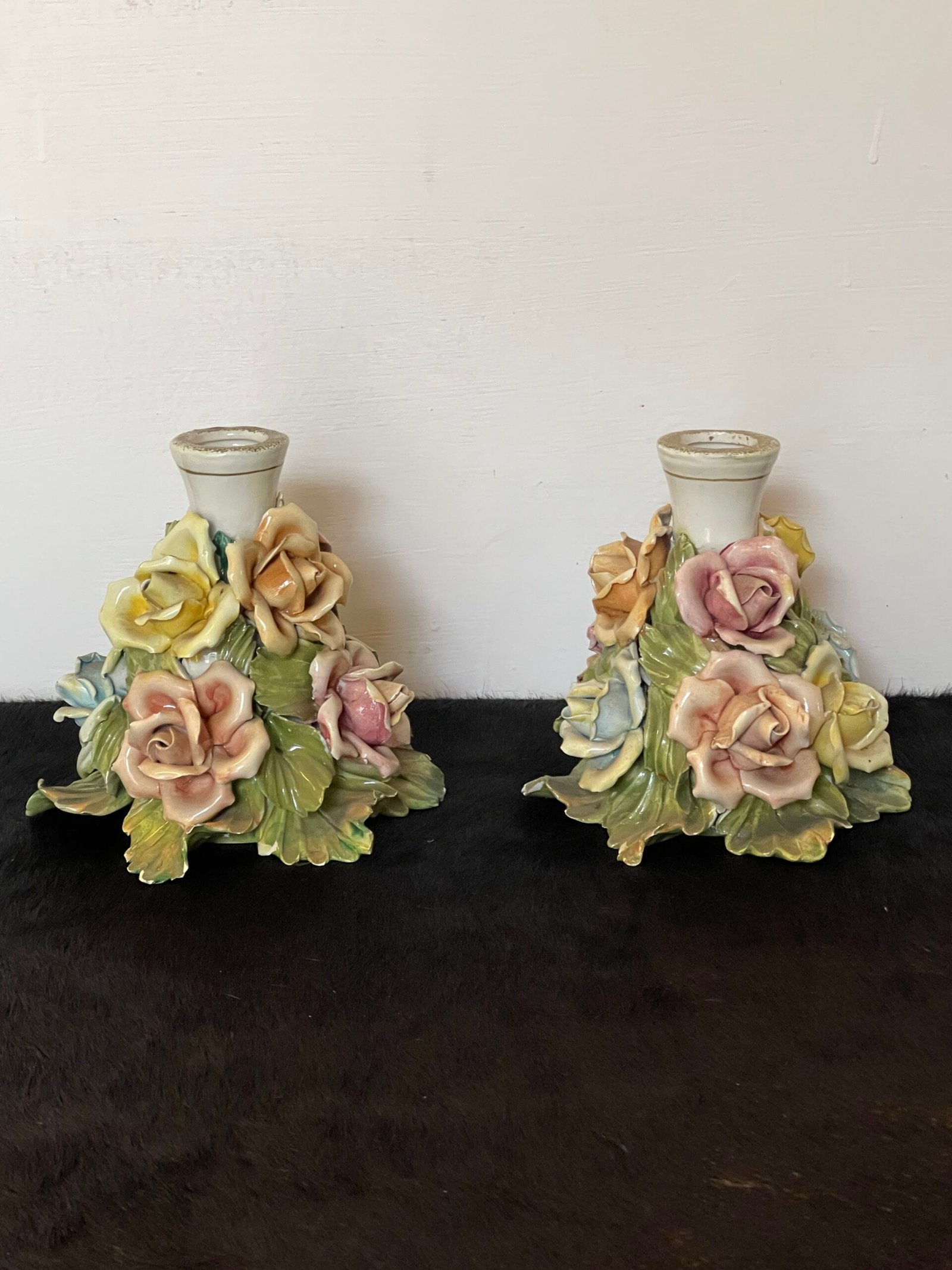 Coppia di Candelieri Vintage in Porcellana con Rose – Bassano